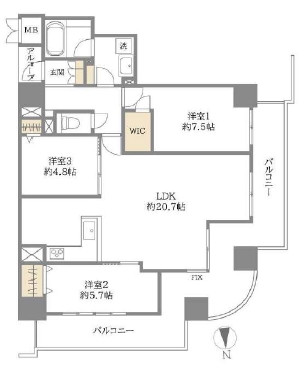 | 専有面積 | 83.76m2 | 階数/階建 | 11階/24階建て |