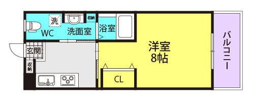 | 間取り | 1K |