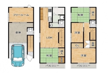 - 難波小学校近くの住宅街にございます。車庫、フリールームと価格が魅力ですネ♪