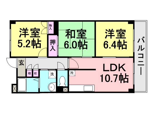 間取り:3LDK(61.98m2) 敷金/礼金:5万/20万 |