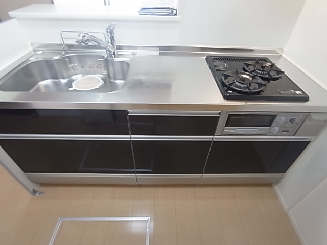 システムキッチン(A棟2口ガスコンロ・B棟3口ガスコンロ)省エネエアコン(A棟)シャッター雨戸(1F)床下収納庫(1F)オートロック・室内物干防犯合わせガラス